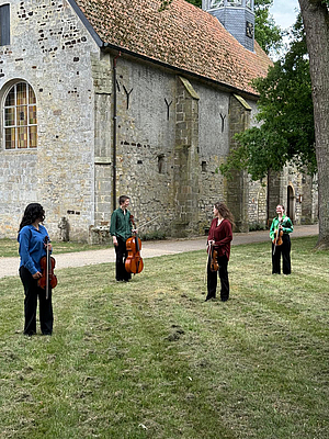 Das Amaris Quartett wurde 2023 in den Niederlanden gegründet, als sich seine Mitglieder während ihres Studiums am Amsterdamer Konservatorium kennenlernten. Ihre gemeinsame Leidenschaft für die Kammermusik brachte sie zusammen. Seitdem entwickeln sie sich unter der Leitung des renommierten Cellisten und Lehrers Dmitry Ferschtman intensiv und mit großer Begeisterung. Das Quartett ist bereits in mehreren Sälen aufgetreten, unter anderem im Musikhafen in Zaandam und im berühmten Muziekgebouw aan ’t IJ in Amsterdam. Im vergangenen Jahr war das Ensemble erstmals im Rahmen des 28. Euregio Musikfestivals zu bewundern. In der akustisch traumhaften Kirche in Weerselo begeisterten die MusikerInnen das Publikum mit dem faszinierenden „Razumovsky“ von Beethoven sowie dem Streichquartett Nr. 3 von Bela Bartok – grandiose Werke auf höchstem Niveau. In diesem Jahr sind sie - open air bei gutem Wetter - in dem einzigartigen Landgut Singraven in Denekamp zu genießen.