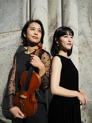 Die in Tokio geborene Ayane Okabe erhielt ihren ersten Geigenunterricht im Alter von vier Jahren. Sie absolvierte das Bachelorstudium an der Tokyo University of the Arts. Später studierte sie in Köln bei Michael Vaiman. Neben Meisterkursen im Mozarteum in Österreich startete sie seit Beginn der Spielzeit 20/21 bis Ende der Spielzeit 21/22 als Akademistin im Gürzenich-Orchester Köln, wo sie nun als 2. Violinistin übernommen wurde. Die Pianistin Soyono Eguro wurde ebenfalls in Tokio geboren und begann im Alter von fünf Jahren mit dem Klavierspiel. Von 2014 bis 2018 studierte sie an der TohoGakuen Hochschule in Tokio und absolvierte anschließend ihr Masterstudium bei Andreas Frölich und im Fach Klavier-Kammermusik bei Anthony Spiri und Robert Kulek in Köln. Sowohl als Solistin als auch Kammermusikerin gab sie Konzerte und nahm an verschiedenen Festivals teil. Seit 2020 spielen Ayane Okabe und Soyono Eguro im Duo zusammen und studieren bei Annette von Hehn, bei Anthony Spiri und bei Robert Kulek. Wenn man sie hört ist zu erleben, dass sie bestens miteinander harmonieren. Auch beherrschen sie ihre Instrumente meisterhaft, selbst hochvirtuose Stellen kommen wie spielerisch von der Bühne.